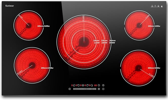 Experience powerful and precise cooking with the Karinear 36 Inch Electric Cooktop, designed to elevate your kitchen’s efficiency and style. Its sleek glass top and five burners provide a seamless cooking surface that blends modern design with high functionality.