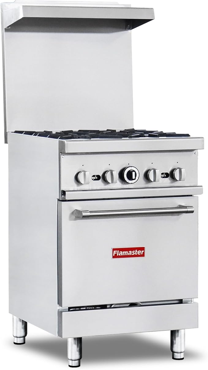 9. Commercial 24″ Gas Range with Oven, 4 Open Burners and