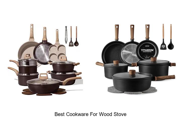 Cast iron and stainless steel cookware are best suited for use on a wood stove because they can withstand high, uneven heat and distribute it evenly. Additionally, heavy-duty enamel-coated pots are also good options as they resist cracking and handle temperature changes well.