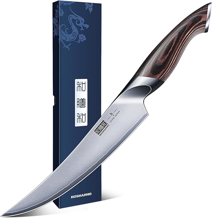 Discover unparalleled precision and versatility with the HOSHANHO Boning Knife. Ideal for both home cooks and professional chefs, this 7-inch high-carbon stainless steel fillet knife offers superior sharpness, ergonomic comfort, and exquisite styling, making it an indispensable tool in any kitchen.