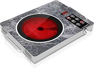 The Alemania electric stove features an 1800W heating element that reaches temperatures up to 1300°F across a 08-inch infrared ceramic surface.