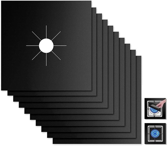 Made with a special non-stick material, the set includes 10 durable protectors that fit square gas ranges perfectly. Say goodbye to scrubbing and hello to easy cleanup after cooking sessions.