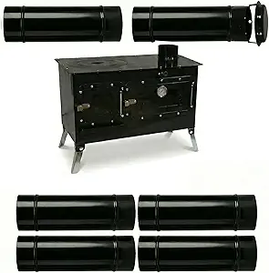Specification Details Fuel Type Wood, Coal Power Source Wood, Coal Weight Approximately 50 lbs Oven Size Fits standard 13×9 pan Key Features Removable cooktop rings, reversible grill/griddle, folding legs, gasket-free door Portability All pipe sections and accessories pack inside firebox