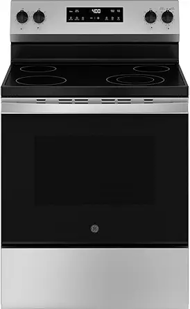 Elevate your kitchen experience with the GE GRF600AVSS 30 in. 5 Burner Element Smart Free-Standing Electric stove. It combines modern technology and practical design to handle everyday cooking needs efficiently.