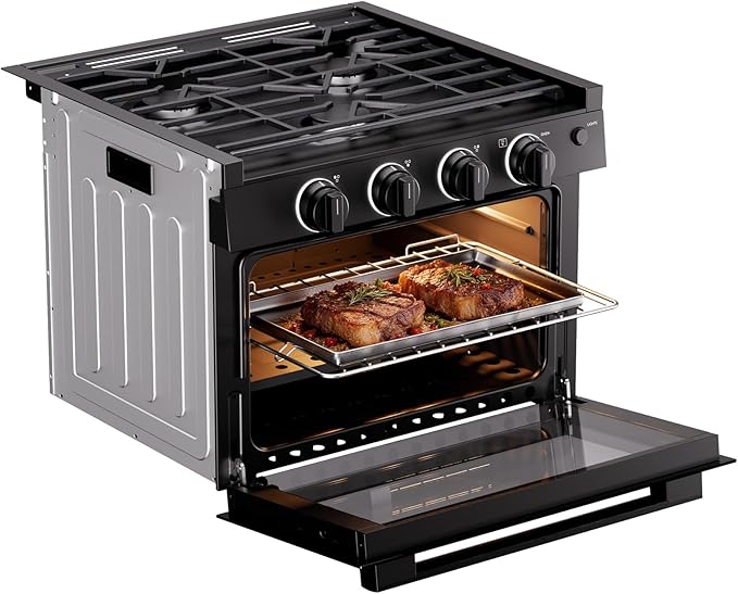 Perfect for RV owners seeking a well-built, space-conscious, and reliable oven stove combo, this unit balances heat efficiency, precision control, and clean design. It’s a solid choice for those valuing both cooking performance and stylish convenience on the road or in tight quarters.