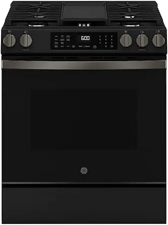 Upgrade your kitchen with the GE 30 in. 5-Burners Slide-in Gas Range, crafted from stainless steel to blend elegantly with any modern cooking space.