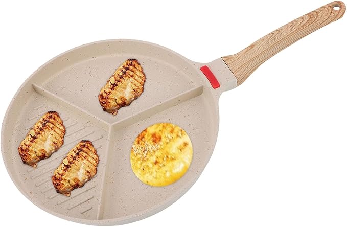 Denash Breakfast Frying Pan, 2-in-1 Divided Grill Pan with Anti