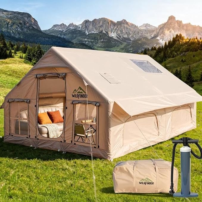 9. VINGLI Inflatable Camping Tent, All-Weather Inflatable Hot Tents with Stove