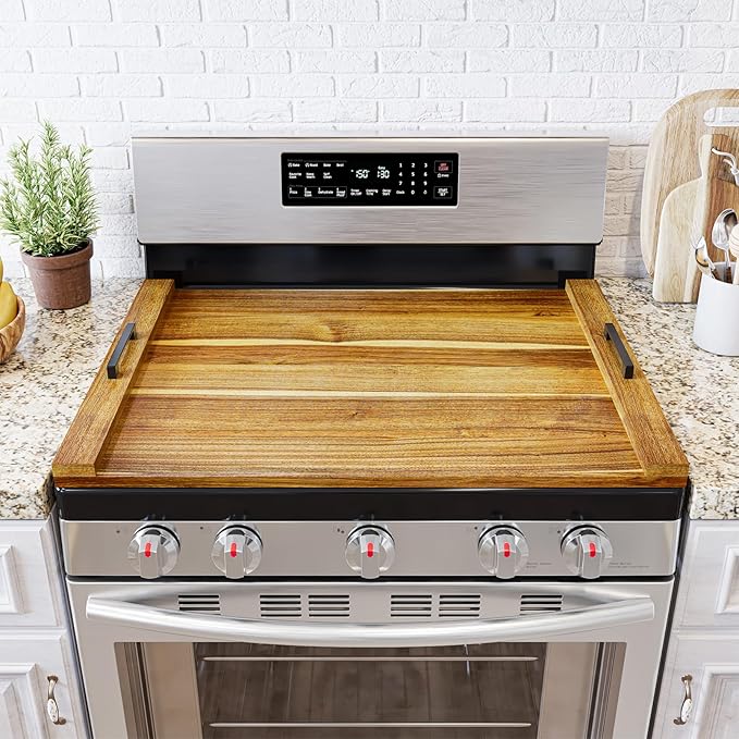 Offering a blend of style and practicality, the TIDITA Acacia Wood Stove Top Cover enhances kitchen space without complicated installation or maintenance. Customers appreciate its warm wood finish and reliable build, though some note the need for careful handling to prevent splitting. Compared to plastic or laminate covers, it brings natural elegance and sturdiness that few can match.