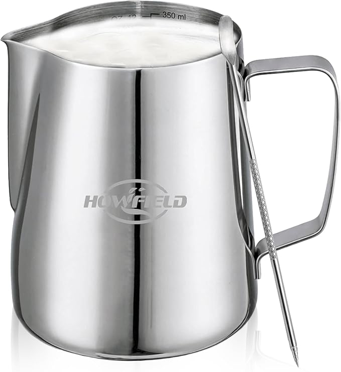 Discover what makes the HOWFIELD Milk Frothing Pitcher a top choice among coffee lovers. Its compact size yet professional-grade design offers unmatched precision, setting it apart from similar products. At just $7, investing in your coffee journey starts with the right tools.